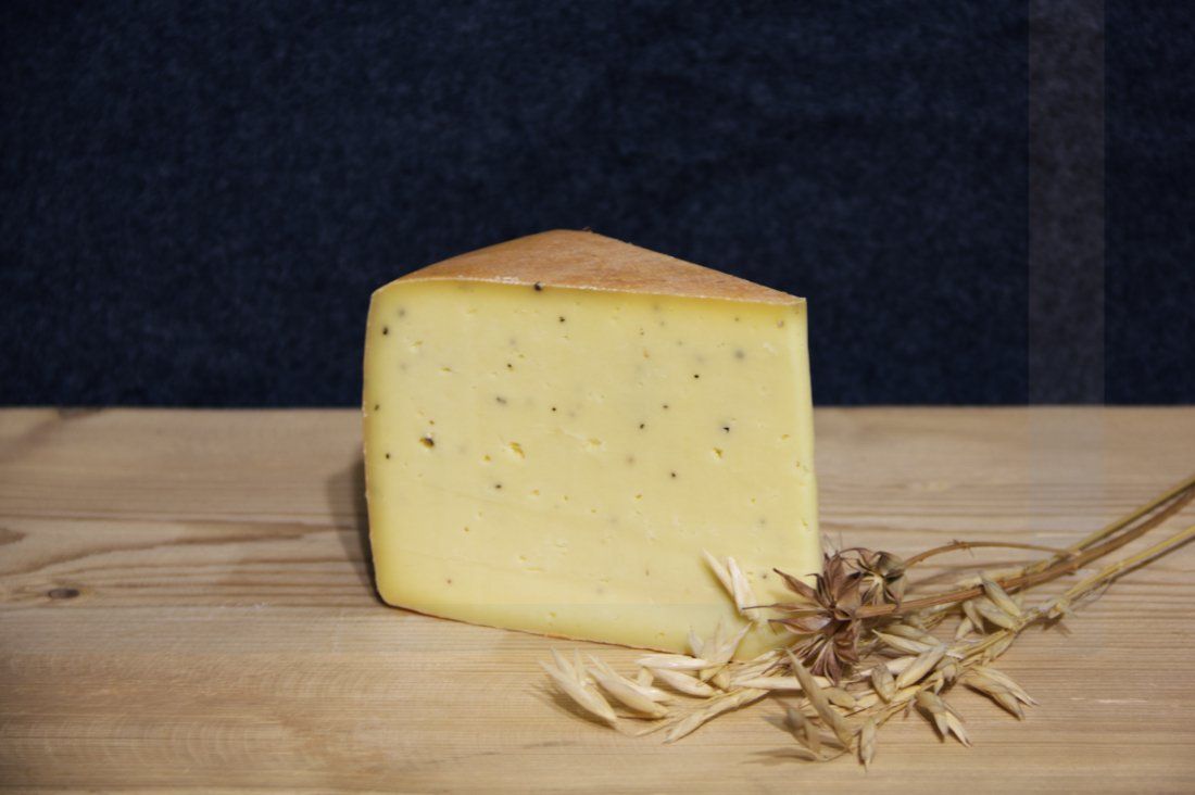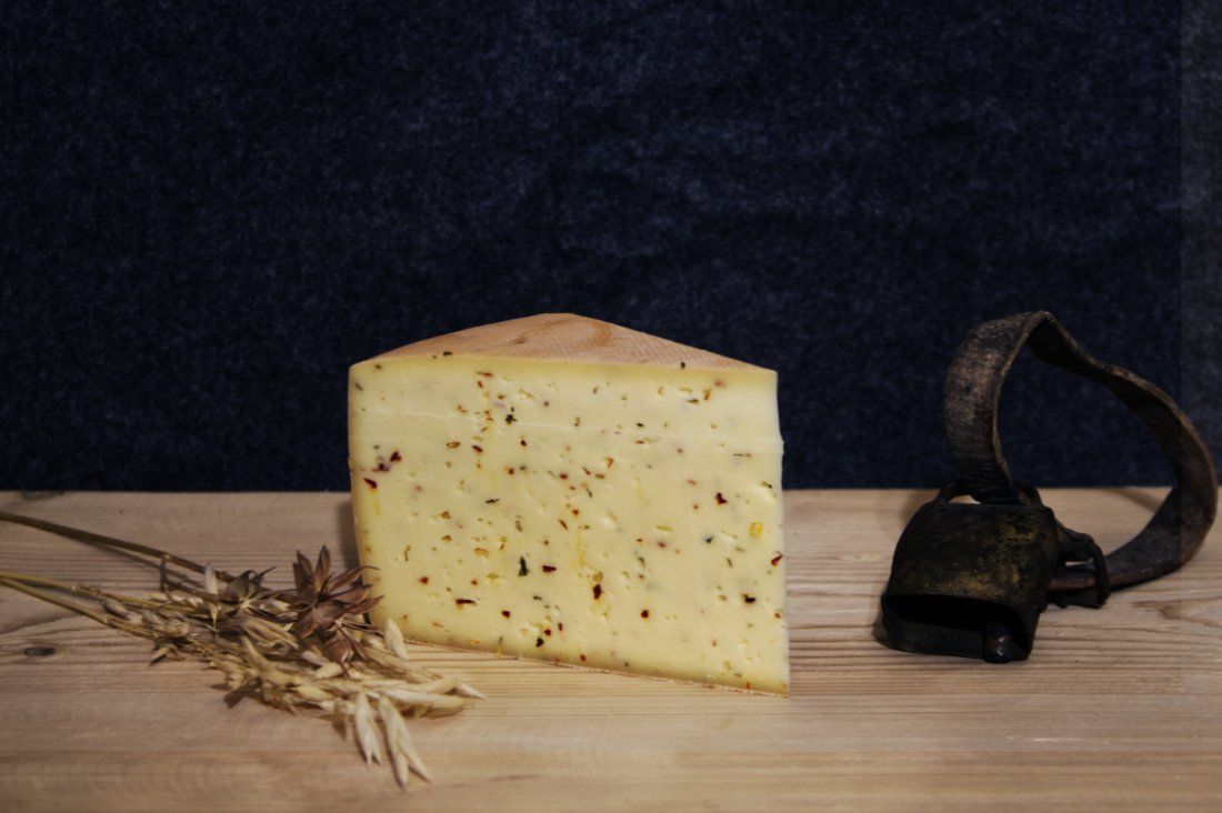 Unseren traditionellen Bergbauern Schnittkäse haben wir mit heimischen Kräutern veredelt. Dies verleiht ihm ein einzigartiges Aroma und kräftigen Geschmack.
